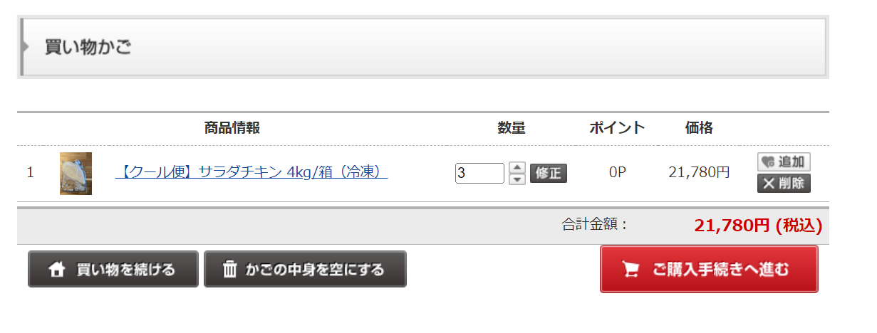 通常通り食材の発注サイトで注文する流れで注文を進めていただきますと、